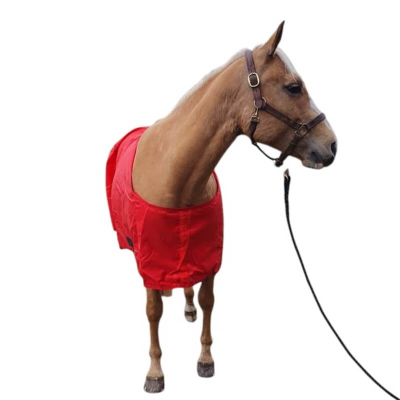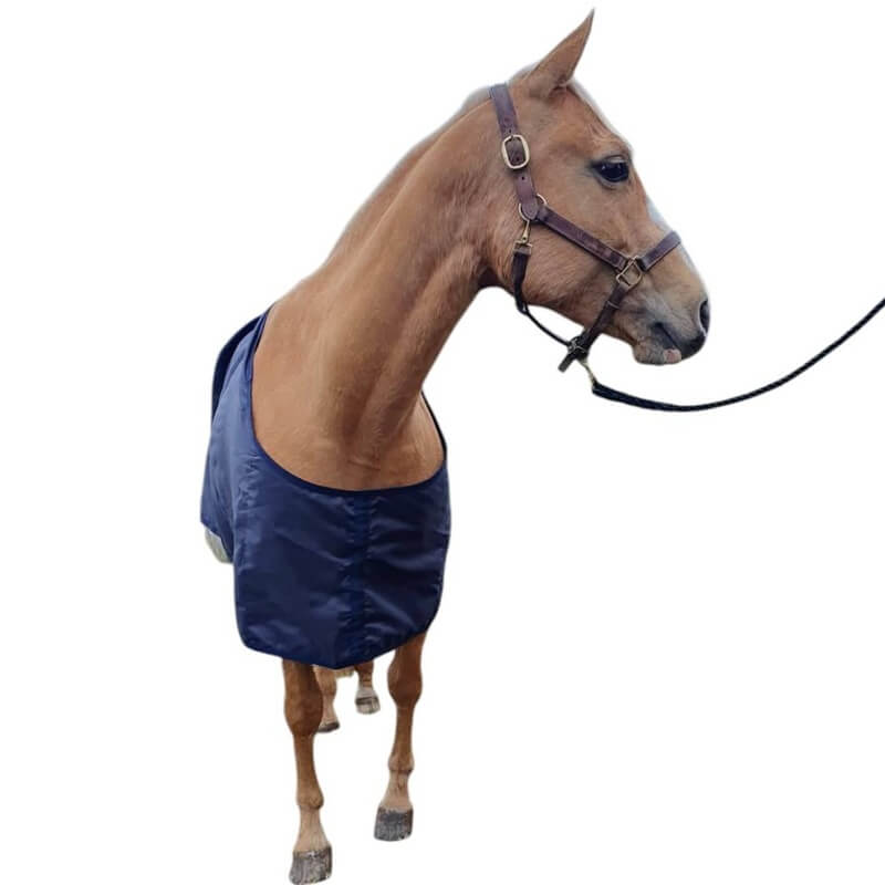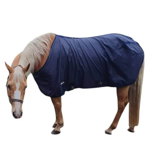 Closed Front Nylon Stable Sheet från PRO-TECH by Umbria Equitazione är ett tunt lättviktstäcke i nylon med hel front som antingen används direkt på hästen som skydd mot smuts eller som överlager med ett tjockare lager under, t.ex. fleece eller bomullstäcke. Den hela fronten skyddar då spännen framtill, gjord under mage och bensnören är konstruerade så att de inte ska vara i vägen för ett mjukare täcke under. Tvätta på låg temperatur, undvik värme vid torkning.